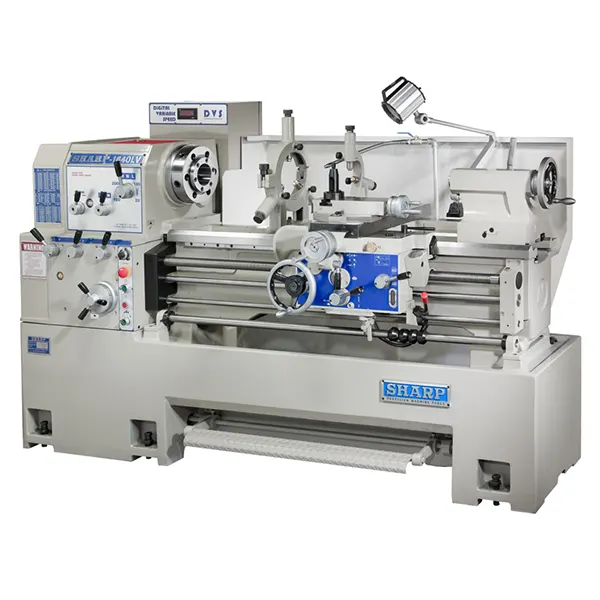This model is designed with 3.18” spindle hole which is unique for 16” swing lathes. Due to its one piece casting machine base, it can support heavier cutting on large diameter materials. The large through hole allows most 3” diameter oil pipes to be machined. The variable speed spindle allows easy change of speeds.